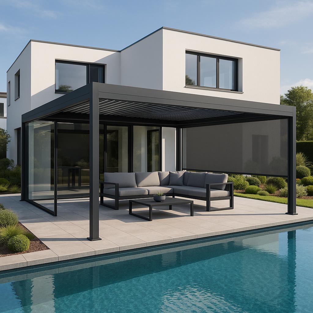 Damit du deiner Individualität freien Lauf lassen kannst, bieten wir dir zahlreiche Möglichkeiten, deine Pergola technisch auszustatten. Ob Steuerung der elektrischen Teile per Smartphone, das Kombinieren von Zip Blind und Glasschiebeelementen sowie die Ausrüstung deiner Pergola mit Heizstrahlern und Ventilatoren - auf individuelle Anfragen folgen individuelle Lösungen, sodass jeder Kunde bei uns ein einmaliges Erlebnis erfahren darf. Kontaktiere uns bei Sonderwünschen und erhalte ein personifiziertes Angebot, das sich sehen lassen kann!
